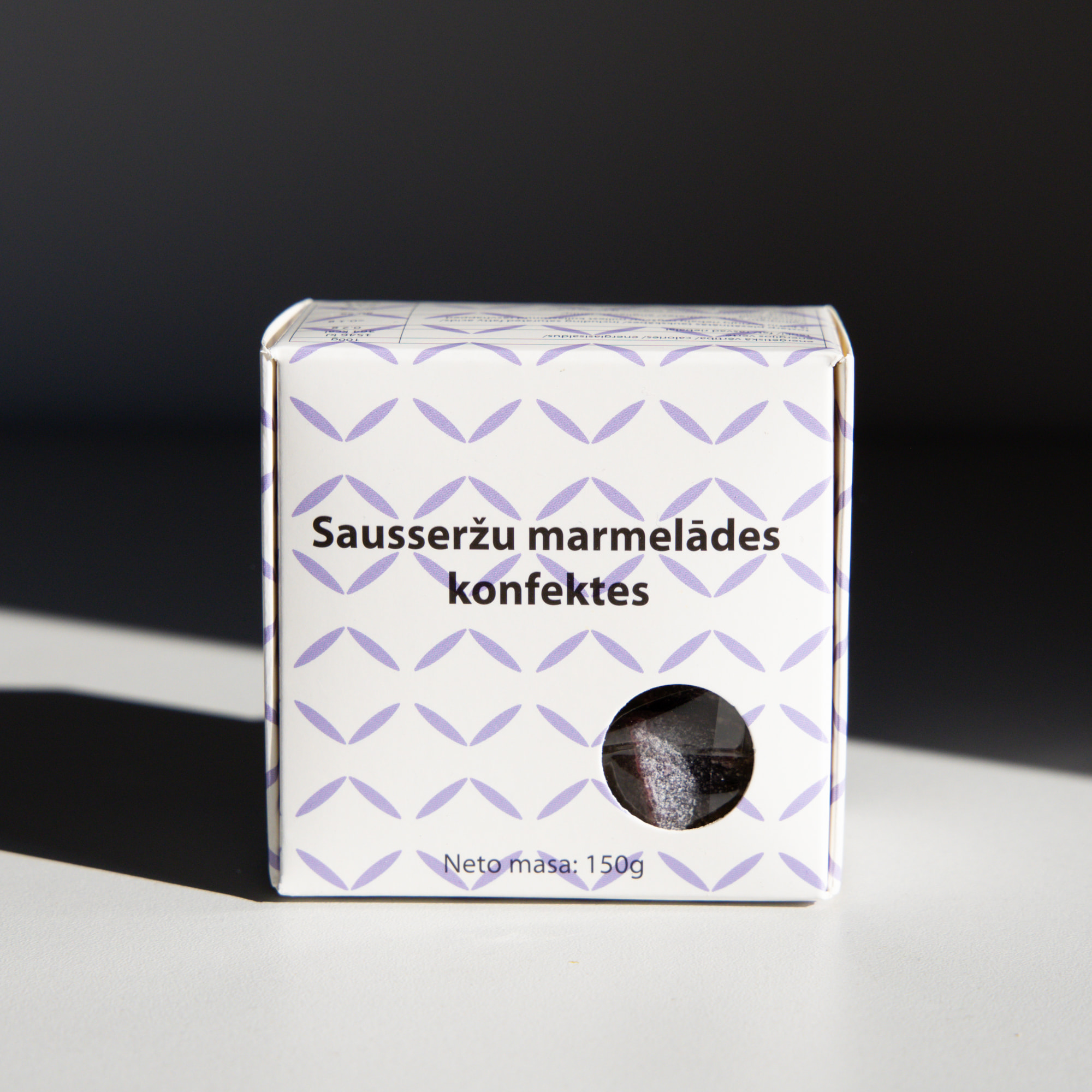 No Latvijā audzētām ogām gatavota sausseržu konfekte, 150 g.
