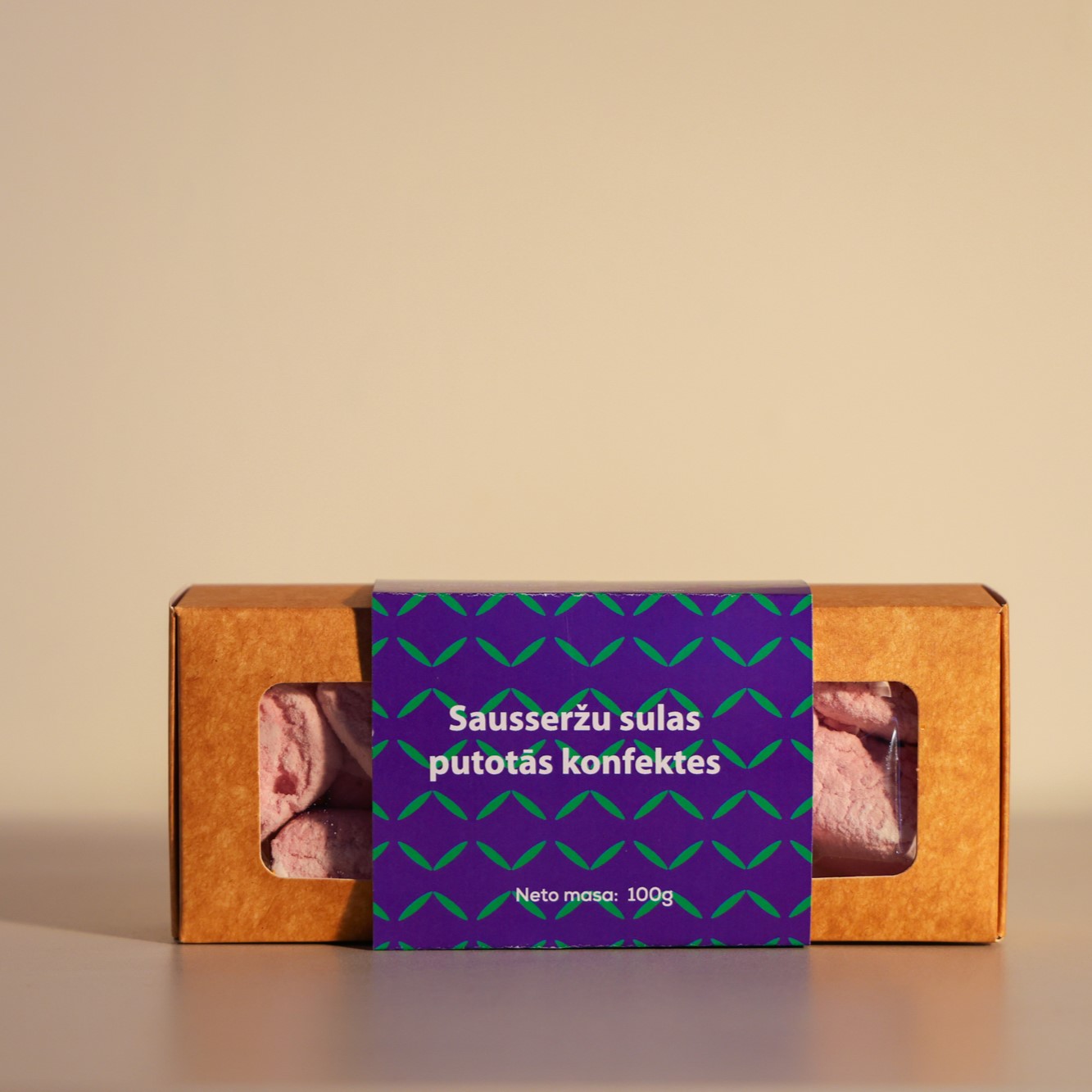 Putotā konfekte ražota bez konservantiem un bez krāsvielām.